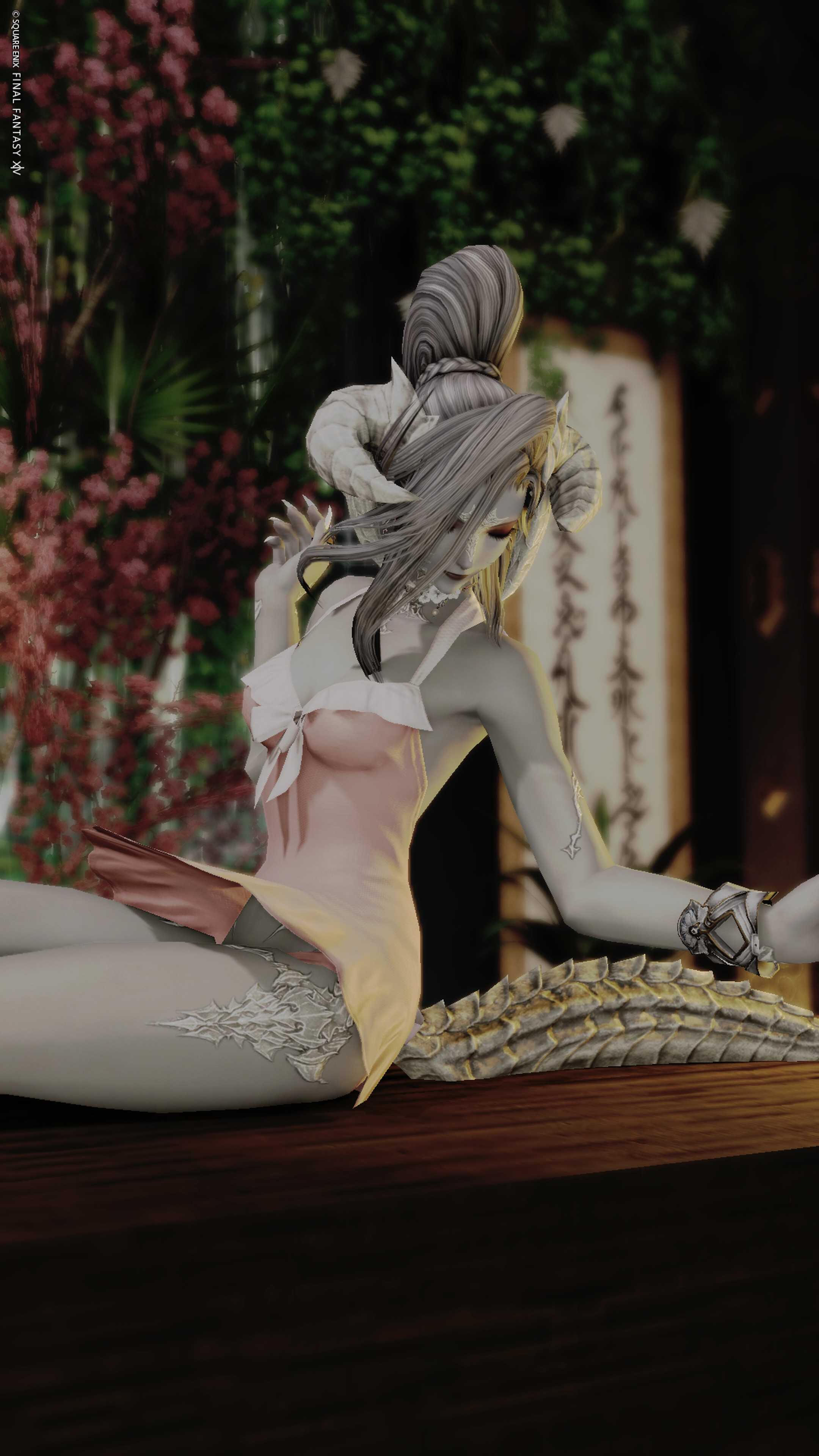 Helene "Ellie" Florence was born with her twin sister, Avyaana, to a wealthy family in Ul'Dah. Their parents watched them closely, leaving little to no room to experience the world. Avyaana was a more independent soul, so the two of them grew up together, but very distant from one another.Ellie's world was made for her by a wealthy father who funded the best education available, any items and food she could ever need, but was otherwise absent. Her mother was the opposite. Also neglected by the father, her mother put all of her attention to Ellie. Over time Ellie began feeling suffocated, never really being able to find her true self.To their displeasure, Ellie began alienating herself from her family and grew closer again to Avyaana, learning to embrace her free spirit. She began making her own choices - some leading to low places, but some leading her closer to her true potential. She first found solace in cafes and lounges, getting to know the local bards and trying new kinds of coffees. Music was always a safe space for her so she started to explore Eorzean night life. She slowly built her own fortune by flirting at the bar and carefully playing games of chance.Ellie followed a path of self-discovery. She learned that she wanted to bring the love, care, and affection to others that she had never properly received for herself. She swiftly ended her career as a Red Mage and instead began her career as a Lady of the Night. After many employment opportunities at nearby night clubs, she decided once again to forge her own path.Over time, Ellie amassed an enormous amount of gil and began building her legacy at The White Rabbit, a speakeasy style nightclub on the beaches of Shirogane. She wished to bring the joy of a cafe into Eorzea night life, by providing a classy, personable night club - a place where the patrons could enjoy local DJ's without losing the closeness of a daytime cafe.